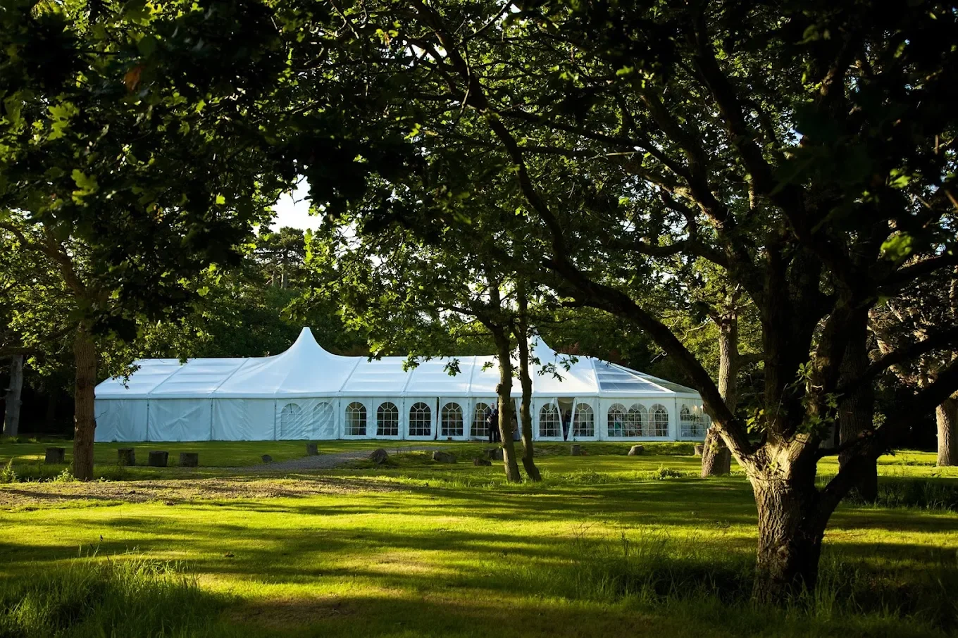 Seaside woodland venue with a marquee, perfect for DIY or festival-style weddings and unique outdoor ceremonies.