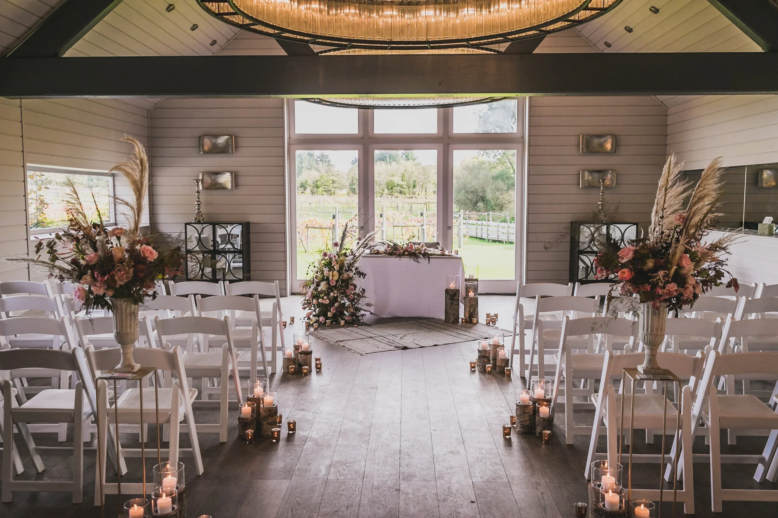 Vineyard backdrops and both indoor and outdoor ceremony spaces.